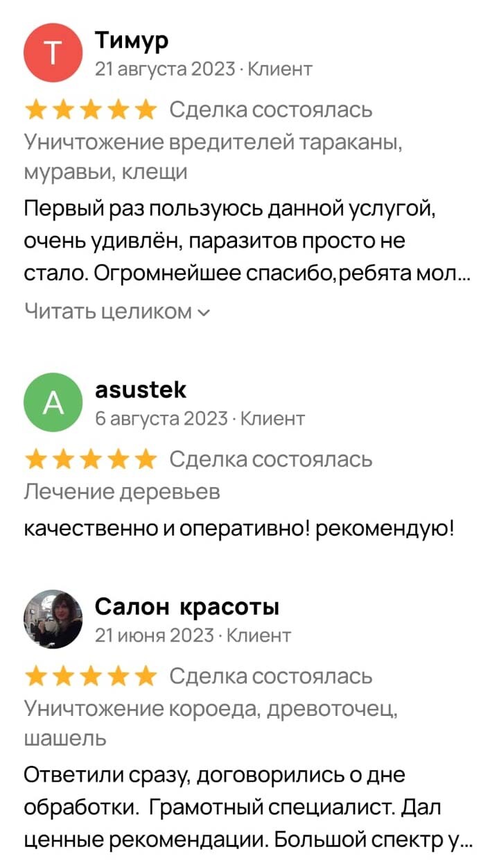 Используем проверенные и высококачественные препараты, поэтому не боимся гарантировать качество обработки.