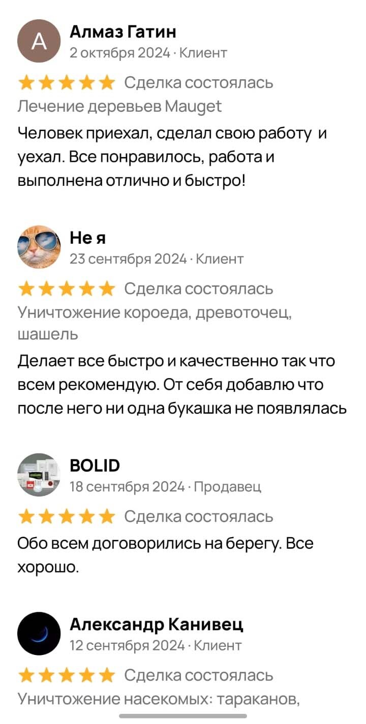 Используем проверенные и высококачественные препараты, поэтому не боимся гарантировать качество обработки.